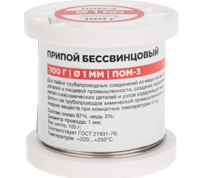 REXANT Припой ПОМ-3, 100г, Ø1мм, (олово 97%, медь 3%), бессвинцовый, ГОСТ 21931-76, катушка