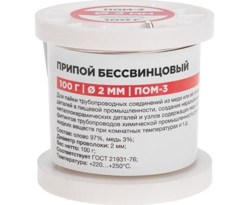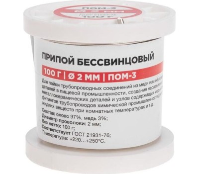 REXANT Припой ПОМ-3, 100г, Ø2мм, (олово 97%, медь 3%), бессвинцовый, ГОСТ 21931-76, катушка