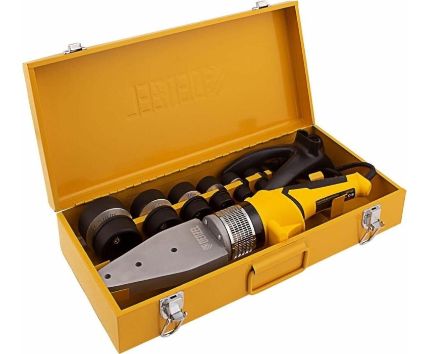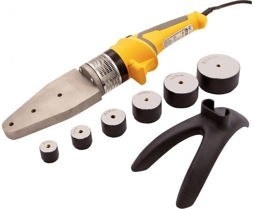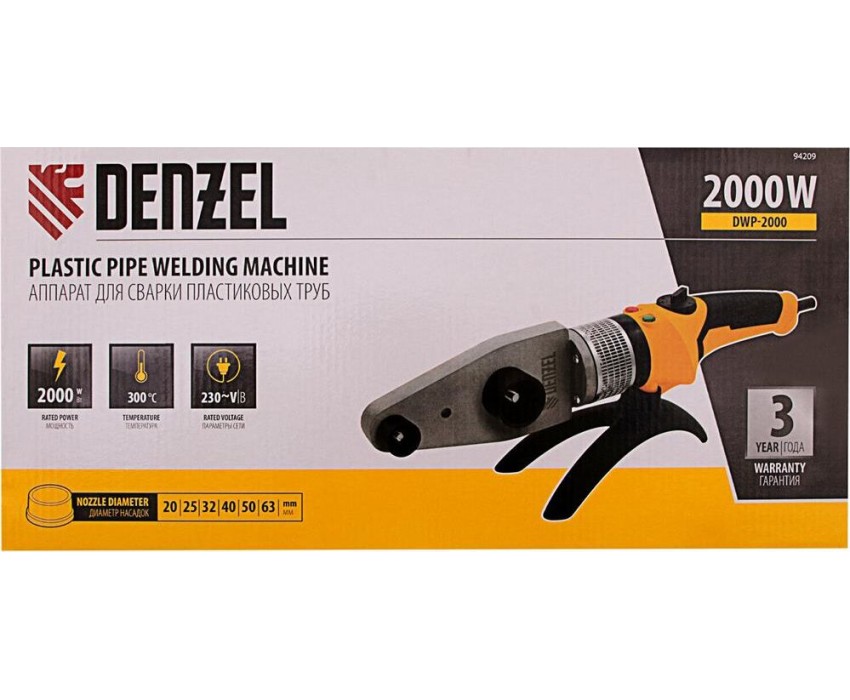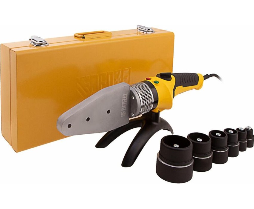 Аппарат для сварки (пайки) пластиковых труб торговой марки DENZEL предназначен для прочного соединения труб из полипропилена и полиэтилена в домашних условиях. Технологический процесс заключается в нагреве/размягчении двух монтажных компонентов и соединении их под давлением. Технические возможности аппарата DENZEL позволяют регулировать температуру нагрева изделий до 260 300 °С. Применение сменных насадок позволяет соединять трубы диаметром от 20 до 63 мм. Насадки имеют тефлоновое покрытие, предупреждающее налипание пластика к их поверхности.