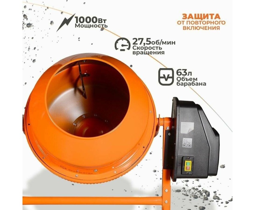 Вес нетто, кг 23,78. Объем барабана, л 63. Напряжение, В 220. Венец металлический. Тип двигателя электрический. Габариты без упаковки, мм 580х560х350. Мощность (Вт) 220. Количество оборотов барабана, об/мин 29.8. Объем готового раствора, л 45. Диаметр загрузочного отверстия, мм 267. Тип подключения сетевая вилка.