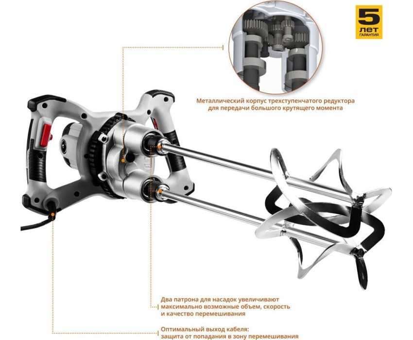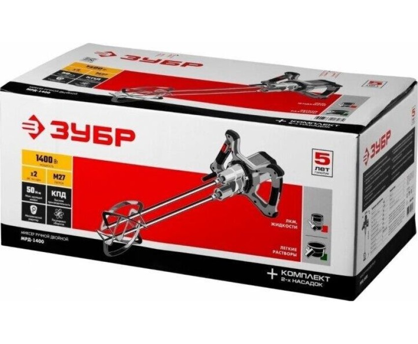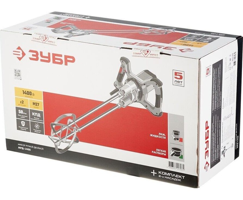 Миксер строительный ЗУБР МРД-1400 1400Вт Электрический миксер двойной