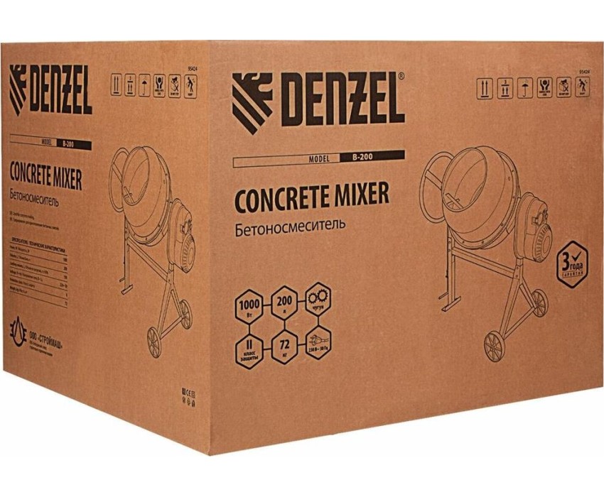 Бетоносмеситель DENZEL B-200 Бетоносмеситель,1000 Вт, 200 л 95424