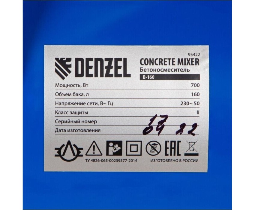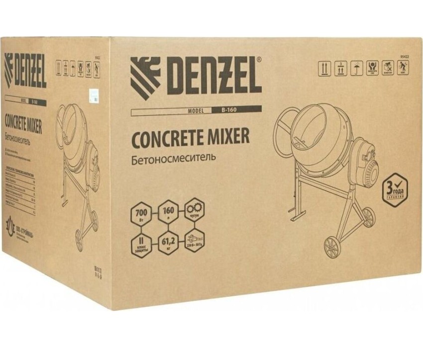 Бетоносмеситель DENZEL Бетоносмеситель B-160, 700 Вт, 160 л 95422