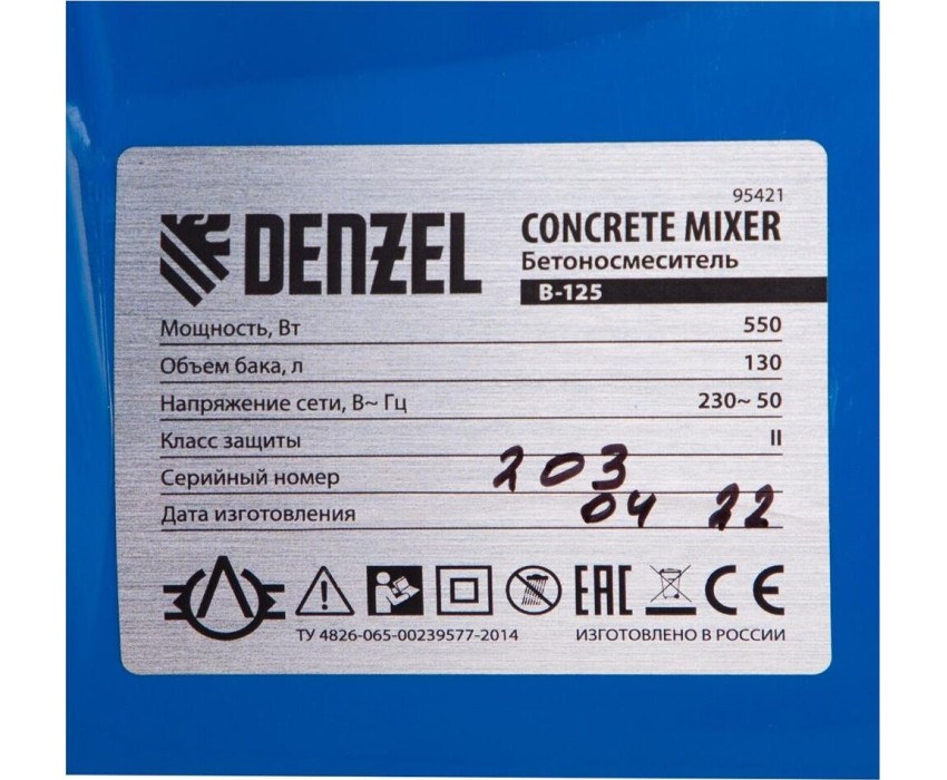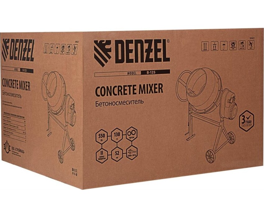 Бетоносмеситель DENZEL Бетоносмеситель B-125, 550 Вт, 130 л 95421