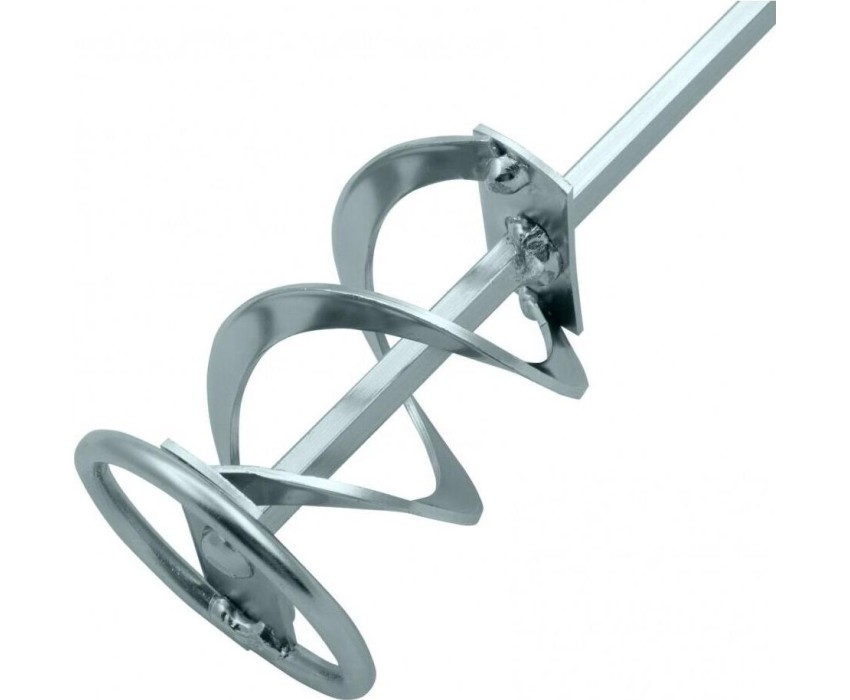 Оцинкованный миксер для красок и штукатурных смесей Denzel 848437, 60 х 400 мм, с шестигранным хвостовиком 8 мм, используется для приготовления строительных растворов. Насадка перемешивает состав снизу вверх, что позволяет добиться полной однородности готовой смеси. Защитное кольцо предотвращает повреждение емкости, в которой готовится раствор. Миксер пригодится во время строительства и ремонта.ПреимуществаНасадка изготовлена из стали и имеет прочную сварную конструкцию, что обеспечивает ей высокую устойчивость к деформации.Оцинкованный миксер устойчив к коррозии и механическим повреждениям, поэтому прослужит долго.Шестигранный хвостовик насадки совместим с дрелями и строительными миксерами средней и высокой мощности, имеющими кулачковые зажимные патроны.Благодаря шестигранной форме хвостовика насадка-миксер надежно фиксируется в патроне инструмента и не проворачивается.