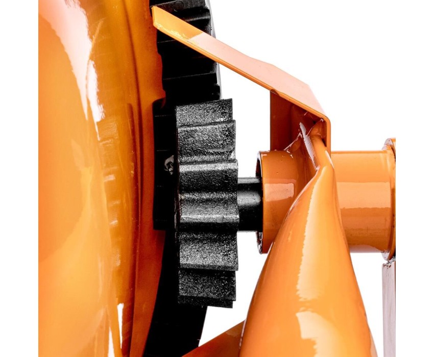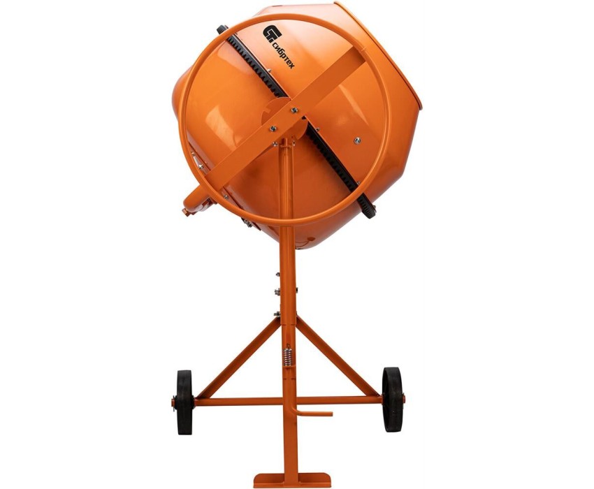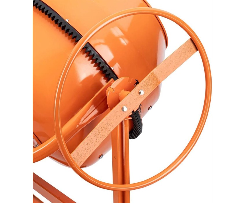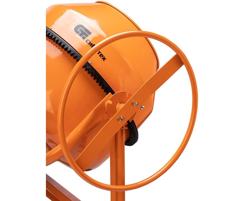 - Удобная загрузка и выгрузка смеси — барабан наклоняется при помощи маховика и легко фиксируется в нужном положении.