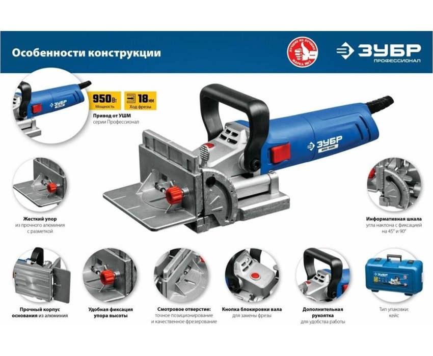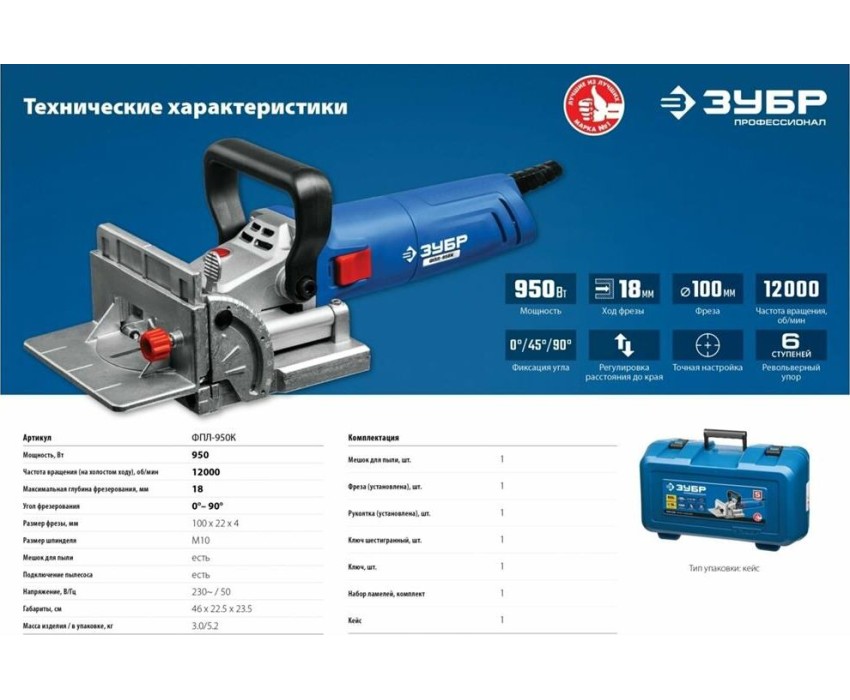 Фрезер ЗУБР ФПЛ-950К Профессионал фрезер ламельный 950 Вт в кейсе.