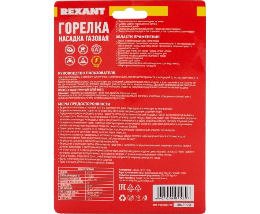 Горелка REXANT (12-0019) GT-19 - пьезоподжиг