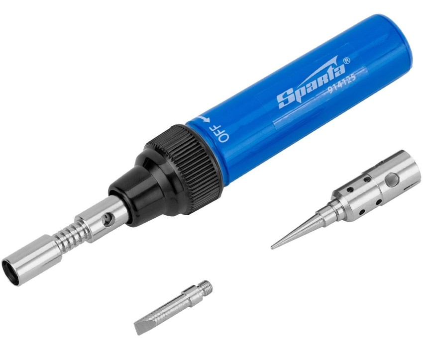 Газовая горелка Sparta 914125 типа «Карандаш», длиной 130 мм, с 2 насадками для пайки, предназначена для получения узкого ровного устойчивого пламени. Может использоваться для розжига костра или мангала, нагрева различных материалов, размораживания замков. Пламя горелки не боится ветра, поэтому ее можно использовать на улице. Горелка подойдет для бытовых целей, будет полезна туристу или радиолюбителю. Преимущества Возможность работы с деталями разного размера — в комплект поставки входят две насадки для пайки (плоская и в виде жала). Удобная эксплуатация — специальный регулятор позволяет выставлять требуемый уровень пламени. Быстрое восполнение запаса газа — подойдет баллончик для заправки зажигалок. Компактность — горелка длиной 130 мм занимает мало места во время хранения и транспортировки.