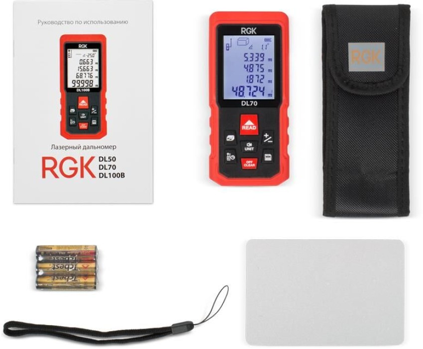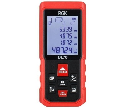 Лазерный дальномер RGK Лазерный дальномер DL70, 2 класс лазера, 635нм, луч красный [4610011873911]