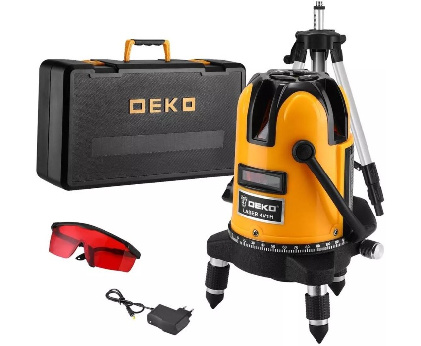 DEKO Уровень лазерный самовыравнивающийся в кейсе LL57 PRO SET 2 PREMIUM со штативом 1 м (5 линий, красный луч)