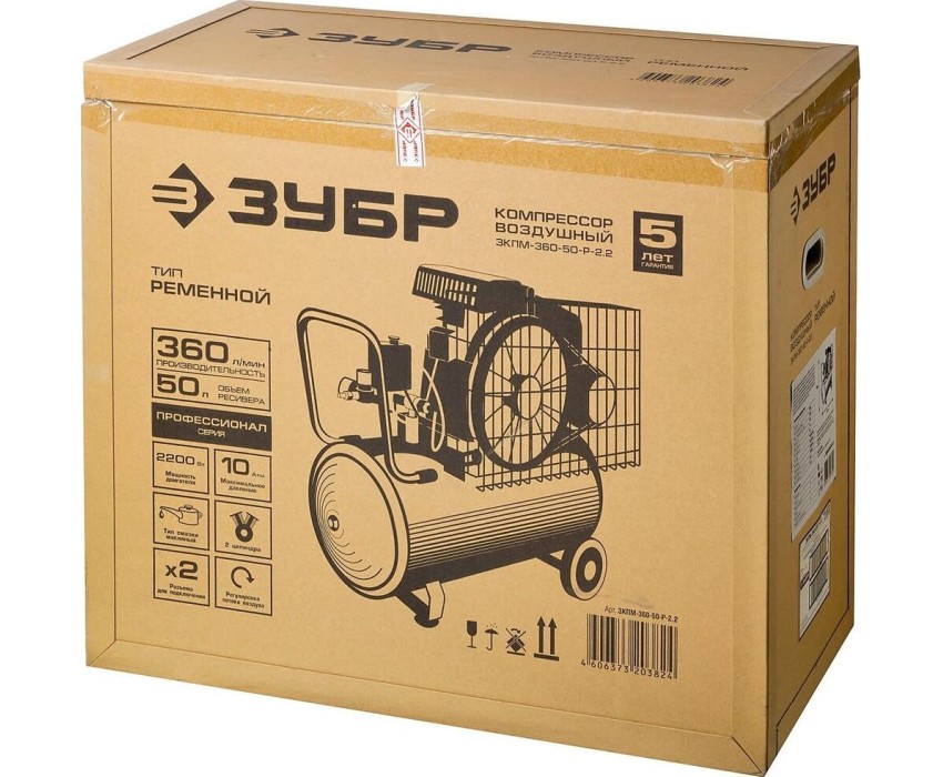 Компрессор ЗУБР ЗКПМ-360-50-Р-2.2 360 л/мин, 50 л рессивер, 2200 Вт, ременной