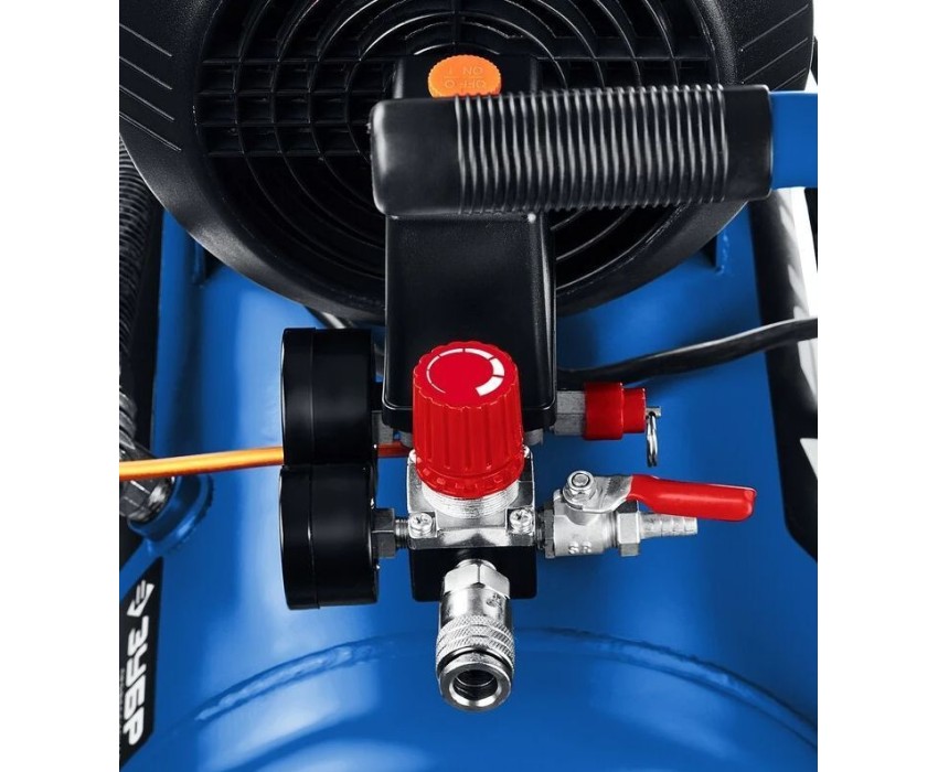 Давление - 8.1 Бар. Производительность - 400 л/мин. Объем ресивера - 50 л. Мощность - 2200 Вт. Напряжение - 220 В. Привод компрессора - прямой. Коннектор - быстросъем и елочка 8 мм. Колеса - 2. Комплектация: Компрессор поршневой, Фильтр воздушный - 2шт., Сапун, Колеса - 2шт., Опора резиновая - 2шт., Руководство по эксплуатации, Инструкция по безопасности. Особенности: Возможность замены штуцера «елочка» на любой другой штуцер с внутренней резьбой 1/2". Механический клапан сброса давления. Шумозащитный пластиковый кожух. Эргономичная ручка и колеса для удобства транспортировки. Возможность подсоединения дополнительного ресивера или штуцера. Цвет синий. Вес нетто 37.72 кг.