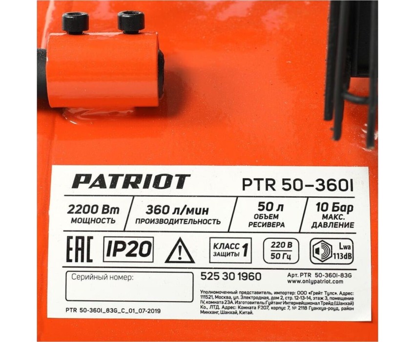 Компрессор PATRIOT 525301960 PTR 50-360I Компрессор поршневой ременной