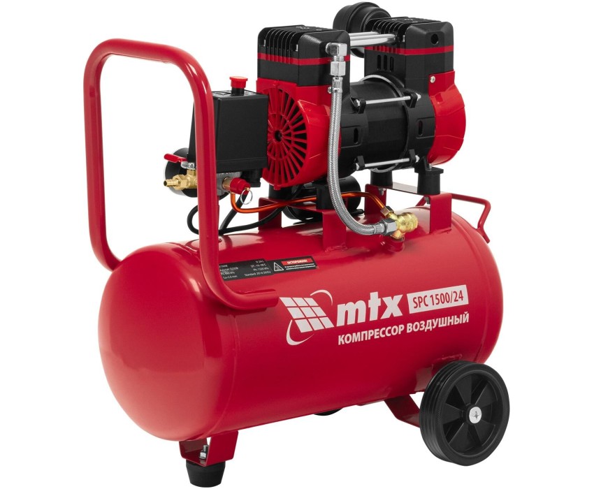 MTX Компрессор безмасляный малошумный SPC 1500/24, 1500 Вт, ресивер 24 л, 260 л/мин// 58139