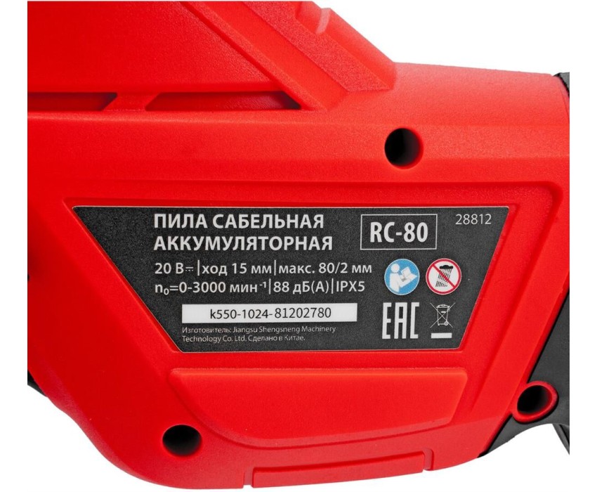 Сабельная пила MTX Пила сабельная аккумуляторная RС-80, Li-Ion, 20 В 28812
