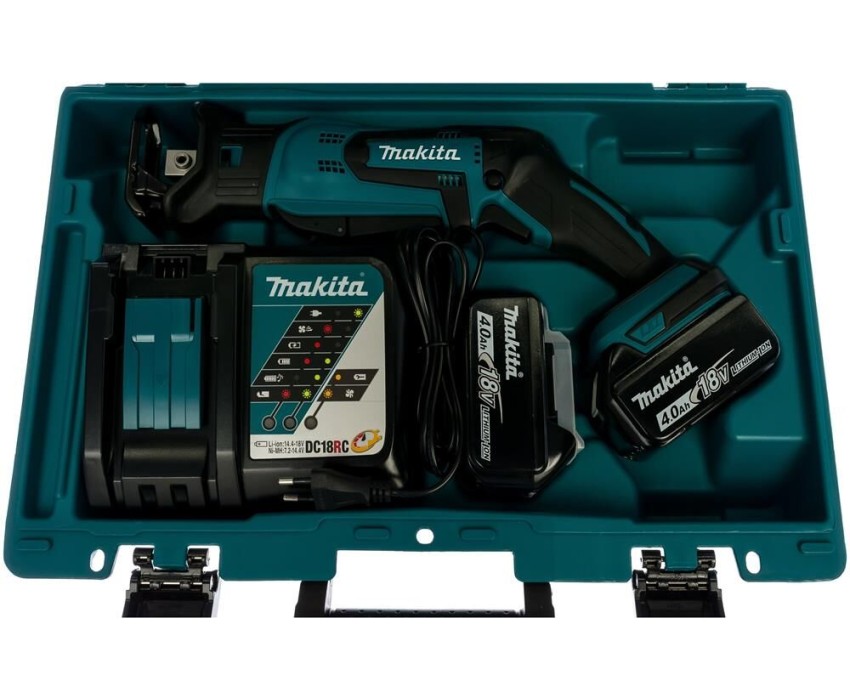 Тип: Сабельная пила. Длина хода пилы: 13. Глубина пропила (древесина): 50. Глубина пропила (металл): 50. Тип электропитания: от аккумулятора. Тип аккумулятора: Li-Ion. Емкость аккумулятора: 4. Напряжение аккумулятора: 18. Встроенная подсветка: есть. Вес товара: 1.5. Особенности: Благодаря легкому весу и компактным размерам пила может использоваться для работ в труднодоступных местах. Пила имеет подсветку рабочей зоны и два включателя для удобного хвата в любом положении. Подходят два типа пилок: для сабельных пил и для лобзиков.. Зарядное устройство в комплекте: есть. Габариты упаковки (ед) ДхШхВ: 0.48x0.14x0.32. Вес упаковки (ед): 2.5. Комплект поставки: Кейс, зарядное устройство, 2 аккумулятора 4.0Ач.. Тип электрического двигателя: щеточный. Индикатор заряда батареи: есть. Количество аккумуляторов в комплекте: 2. Наименование аккумуляторной платформы: Makita LXT. Является частью аккумуляторной платформы: да. Гарантия: 12 мес.. Число ходов: 3000 ход/мин.. Размеры товара (ДхШхВ): 81х398х220 мм. Функциональные особенности: плавная регулировка скорости. Число ходов: 3000 ход/мин. Аккумулятор: Li-Ion, 4 Ач, 18 В, количество АКБ 2 шт. Особенности: встроенная подсветка. Вес: 1.5 кг. Длина хода: 13 мм. Глубина резания: в металлических профилях и трубах 50 мм, в древесине 50 мм. Электропитание: от аккумулятора