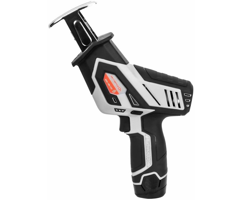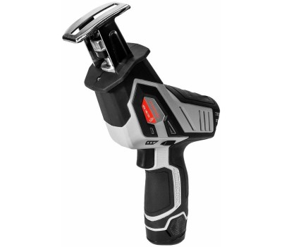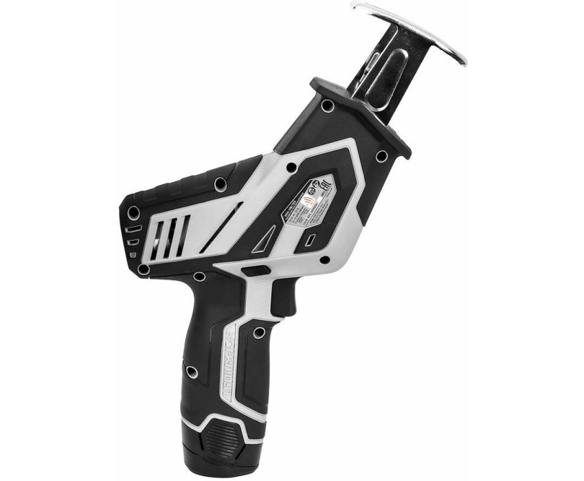 Тип: Сабельная пила. Длина хода пилы: 15. Глубина пропила (древесина): 100. Тип электропитания: от аккумулятора. Тип аккумулятора: Li-Ion. Напряжение аккумулятора: 12. Встроенная подсветка: есть. Вес товара: 1.44. Особенности: Возможно использование приспособления для выполнения садовых работ (приобретается дополнительно).. Зарядное устройство в комплекте: нет. Габариты упаковки (ед) ДхШхВ: 0.305x0.07x0.15. Вес упаковки (ед): 4.5. Комплект поставки: Аккумуляторная ножовочная пила, полотно по металлу, полотно по дереву, упаковка, руководство по эксплуатации и инструкция по безопасности, гарантийный талон.. Тип электрического двигателя: щеточный. Страна производства: Китай. Защита от непреднамеренного включения: есть. Индикатор заряда батареи: есть. Класс инструмента: полупрофессиональный. Наименование аккумуляторной платформы: АПИ-Т 12В. Является частью аккумуляторной платформы: да. Гарантия: 24 мес.. Число ходов: 3000 ход/мин.. Размеры товара (ДхШхВ): 250х180х80 мм. Эргономика: рукоятка с мягкой накладкой. Функциональные особенности: бесключевая замена оснастки, плавная регулировка скорости. Число ходов: 3000 ход/мин. Глубина резания: в древесине 100 мм. Особенности: встроенная подсветка. Вес: 1.44 кг. Электропитание: от аккумулятора. Аккумулятор: Li-Ion, 12 В. Длина хода: 15 мм