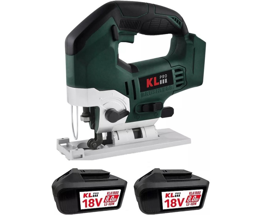 KLPRO Профессиональный лобзик бесщеточный KLDT18B-80 (18В, Li-ion-2шт, 8.0Ач, патрубок для пылесоса, полотна (дерево/металл, З/У-4А , кейс)