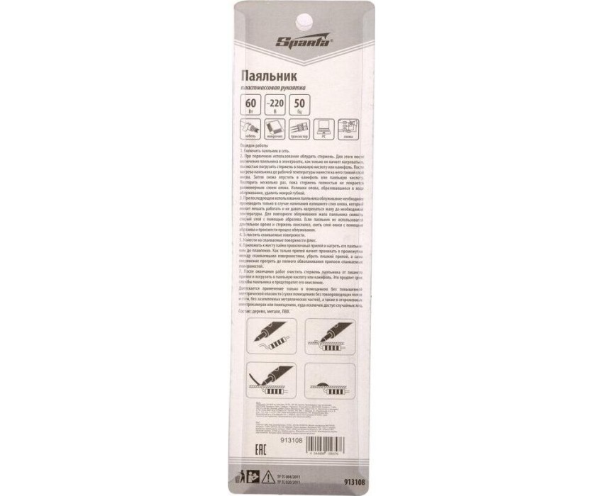 SPARTA Паяльник с ручкой из пластика, 60 Вт, 220 В 913108
