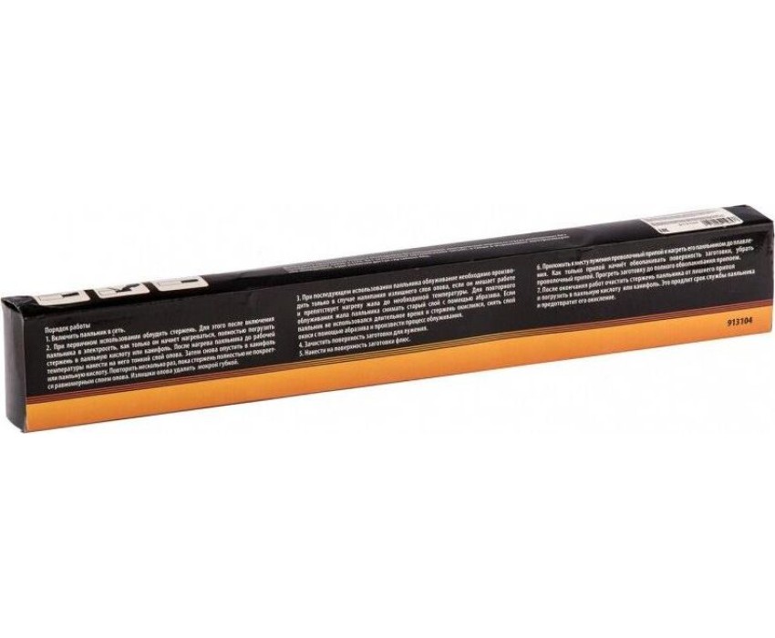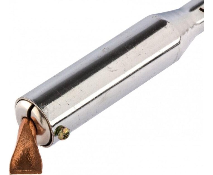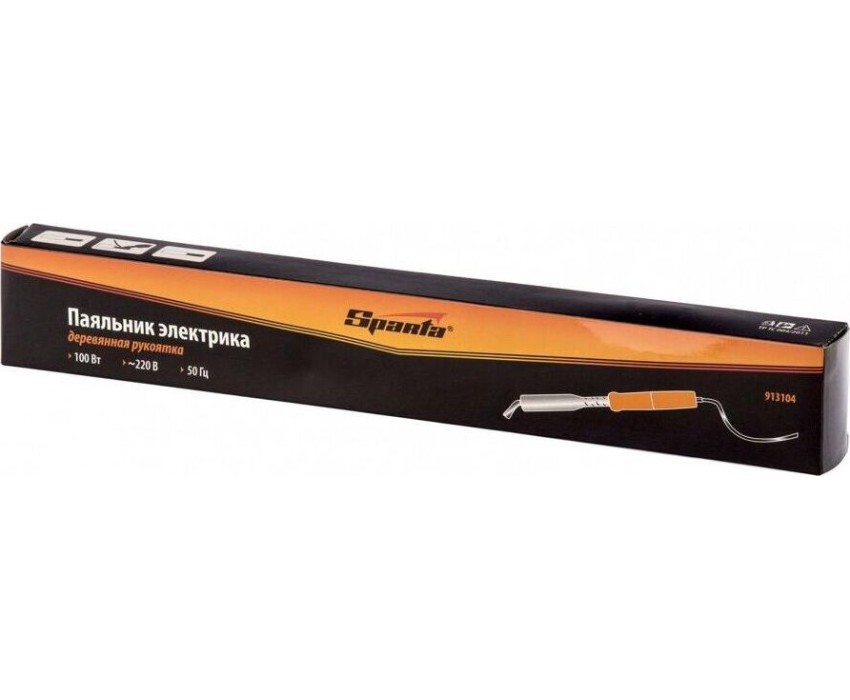 Паяльник электрика Sparta 913104, 100 Вт, 220 В, с ручкой из дерева, применяется для пайки толстых кабелей и крупных деталей. С этими задачами прибор успешно справляется благодаря жалу в форме лопатки. Наконечник съемный, поэтому при необходимости его легко заменить. Нихромовая спираль, являющаяся нагревательным элементом, устойчива к повреждениям, что обеспечивает надежность и долговечность прибора. Паяльник будет полезен для проведения электромонтажных работ.ПреимуществаМедное жало разогревается быстро и чистится легко, поэтому паяльник удобен в использовании.Деревянная рукоятка слабо нагревается и не деформируется, что продлевает срок службы инструмента.Рукоятка из древесины комфортно лежит в руке, поэтому длительное паяние не вызывает дискомфорт.Прибор комплектуется подставкой, на которой его удобно размещать во время работы.