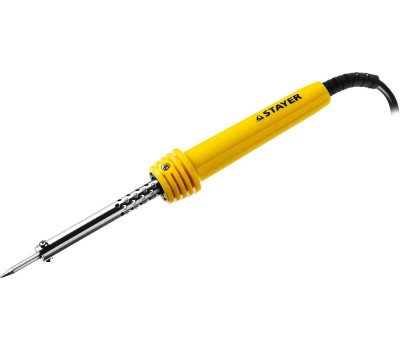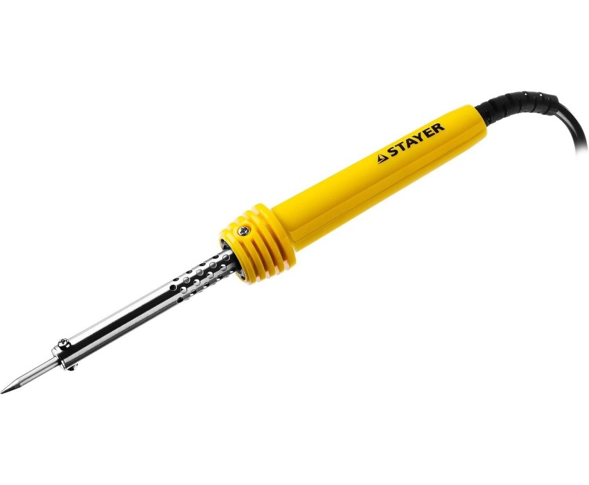 Паяльное оборудование STAYER изготовлено из высококачественных современных материалов. Профессиональный подход и учет всех тенденций развития рынка обеспечивают высокую надежность и длительный срок службы. оборудования. Преимущества Эргономичная рукоятка Заземление Использование Электропаяльник непрерывного нагрева применяется для монтажа электронных компонентов на печатную плату, пайки медных проводников сечением до 1 мм2