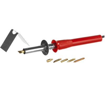 Прибор для выжигания с набором насадок 6 шт. MIRAX 55430-H6 используется для декоративных работ, художественного оформления деревянных заготовок. Комплектуется шестью насадками(1.Для пайки, 2.Конус для выжигпания,3 Нож для выжигания, 4.Булька для изготовления цветов, 5. Овал для выжигания, 6.Для крепления страз). Сменные насадки, делают прибор универсальным. Преимущества Эргономичная пластиковая рукоятка Надежный нагревательный элемент 6 высококачественных медных жал в комплекте Подставка в комплекте Использование Набор предназначен для выжигания по дереву, коже, и нанесения изображений на различные поверхности, а так же паяния, крепления страз и изготовления искусственных цветов.