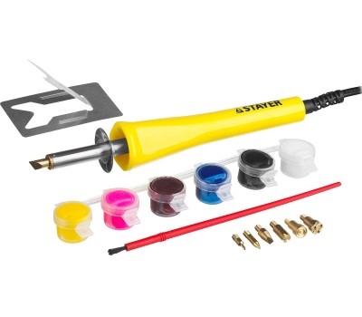 STAYER MAXTerm, 30 Вт, 2 в1, в наборе: 7 насадок + краски, прибор для выжигания и пайки (45220)