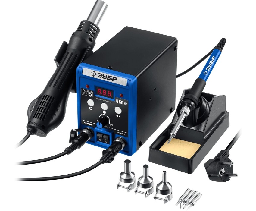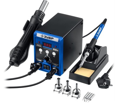 ЗУБР ПСР-650, 100 - 500°С, 650 Вт, 2 в 1, ремонтная паяльная станция, Профессионал (55427)