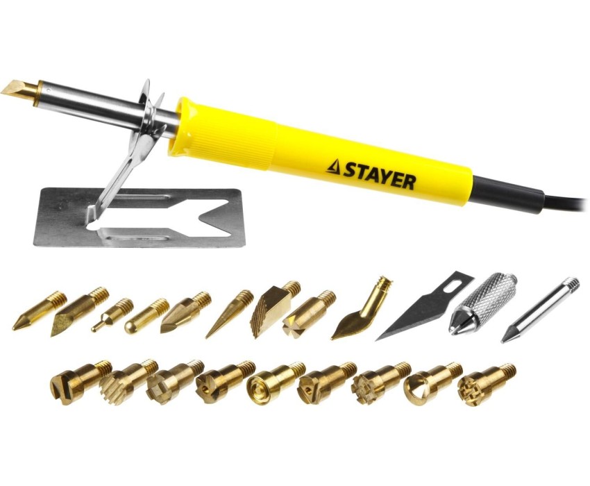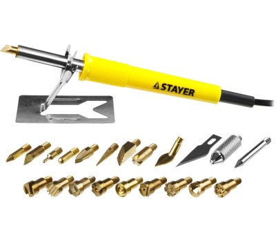 STAYER PROTerm, 30 Вт, 3 в 1, в наборе: 20 насадок, в кейсе, прибор для выжигания, пайки и резки, Professional (45227)