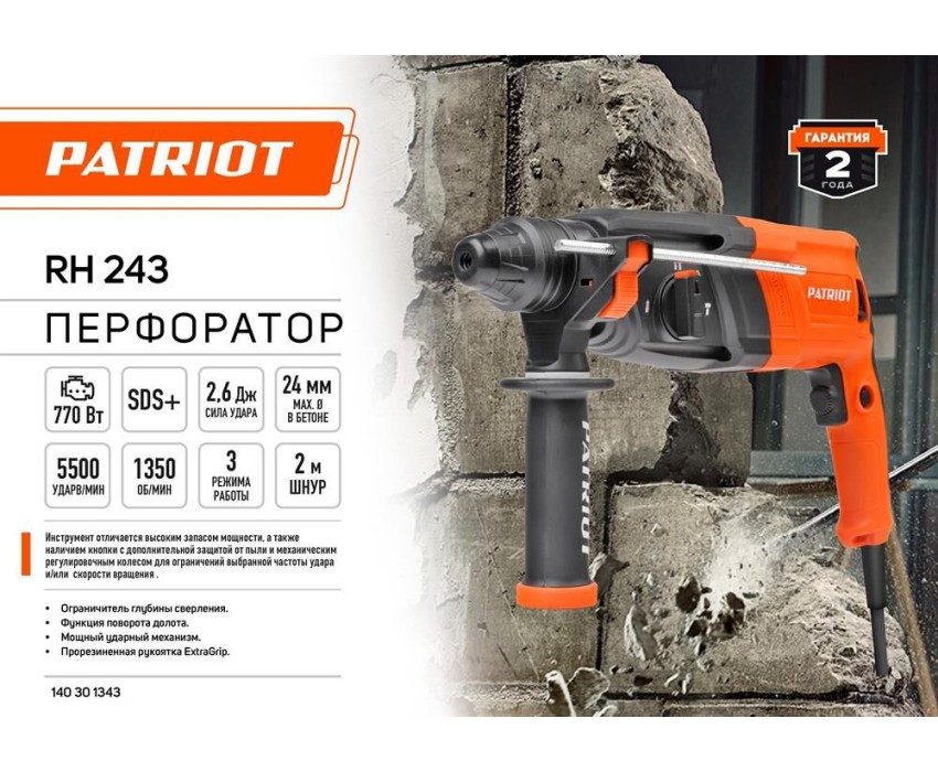 Перфоратор PATRIOT 140301343 RH 243 770Вт