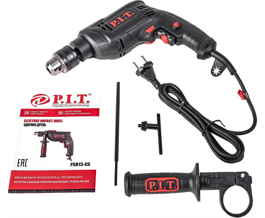 Дрель ударная P.I.T. Дрель ударная электрич. PSB13-C6 (650Вт, ключ. патрон 13мм, 0-3000 об/мин, 0-48000 уд/мин)