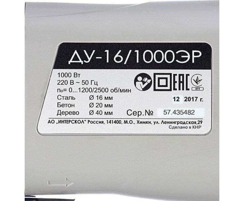Перфоратор ИНТЕРСКОЛ ДУ-16/1000 ЭР 2-х ск.