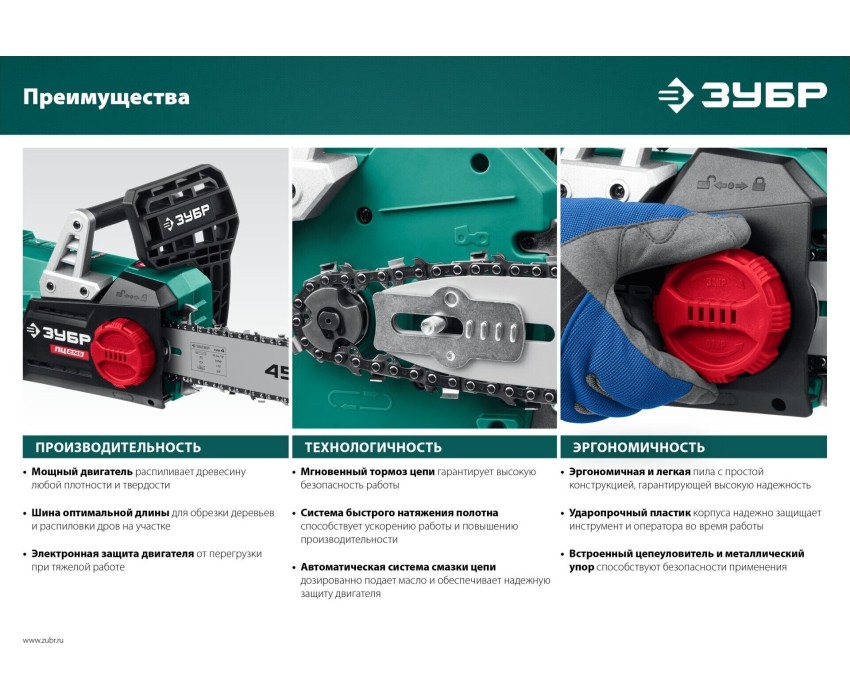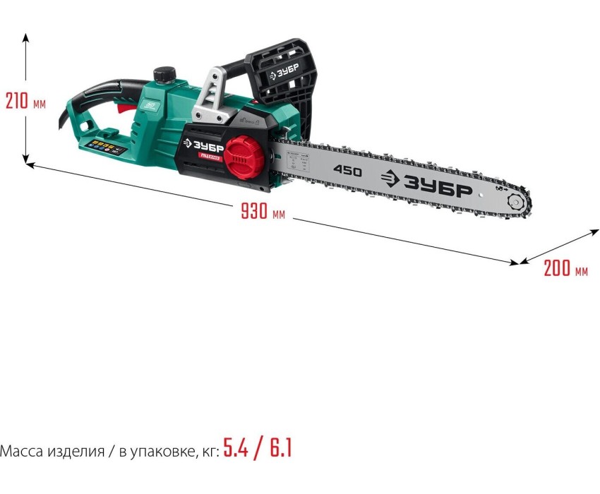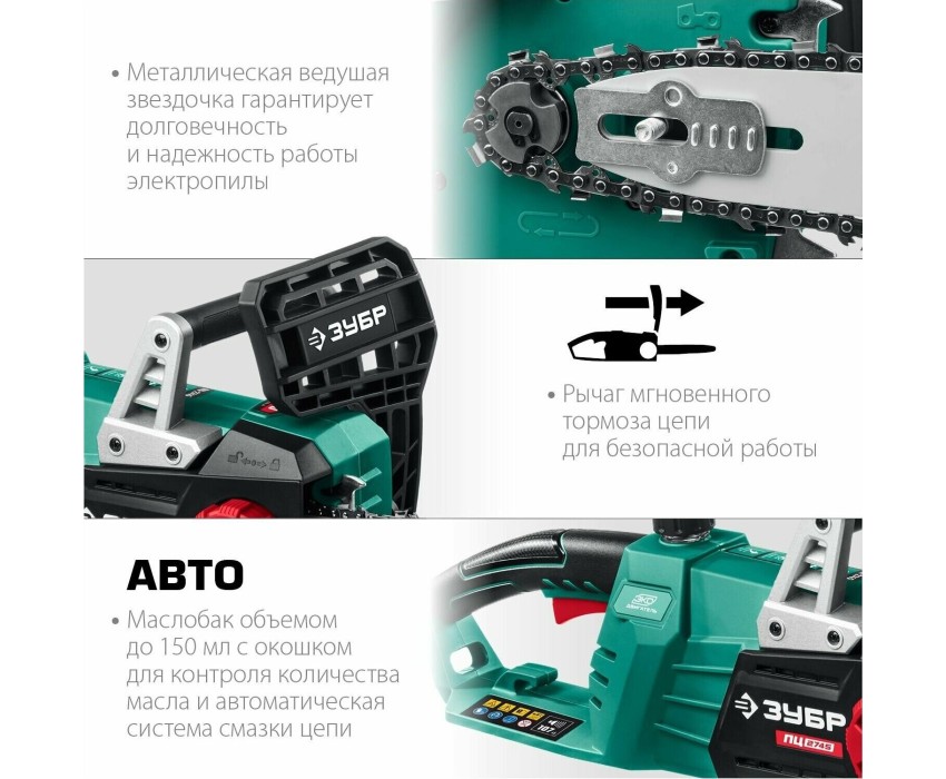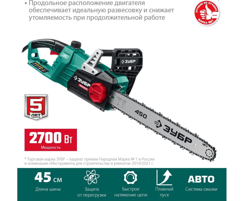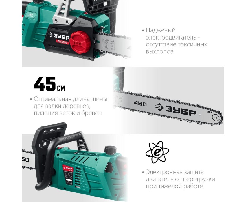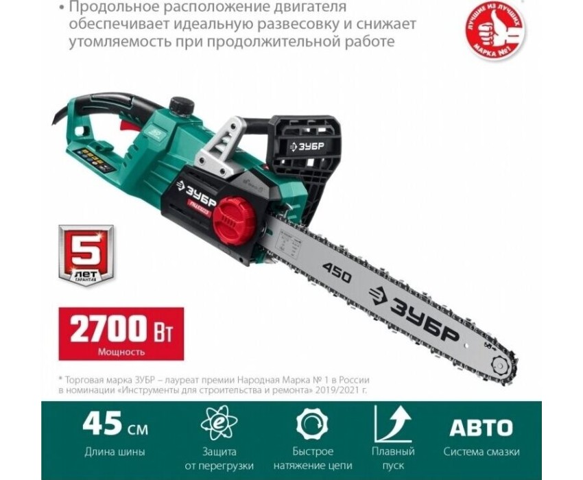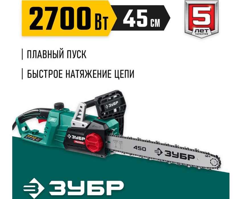 Пила цепная электрическая ЗУБР ПЦ-2745 2700 Вт, 45 см шина, пила цепная электрическая