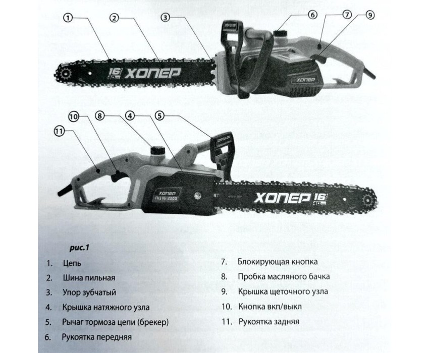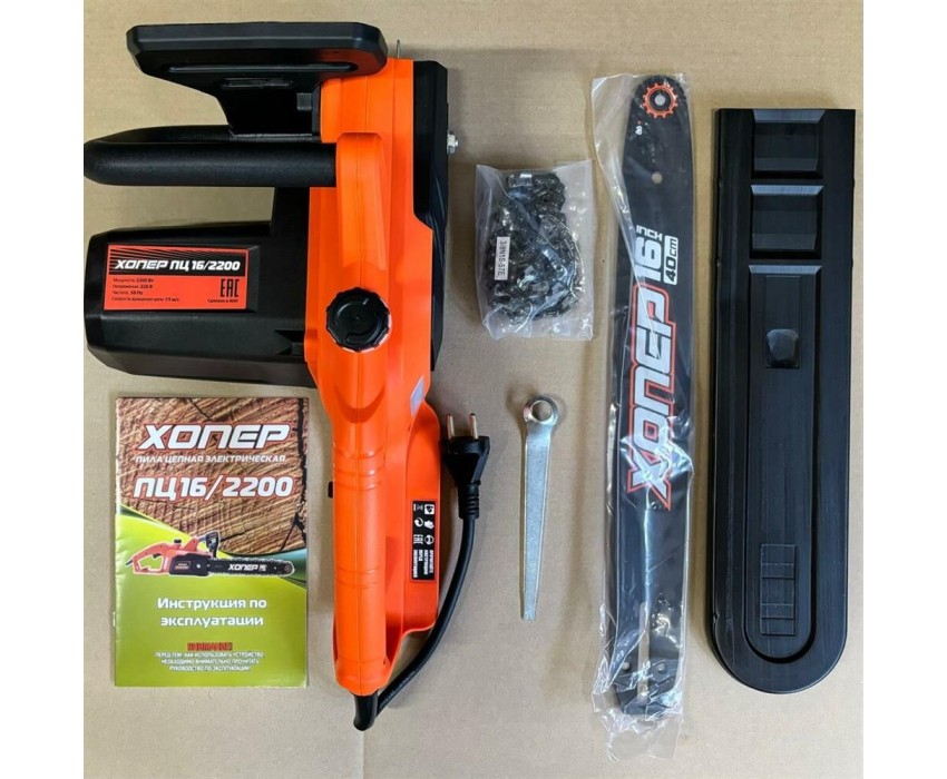 Пила электрическая цепная ХОПЕР ПЦ-16/2200 (2200W, шина 16 , тормоз цепи)