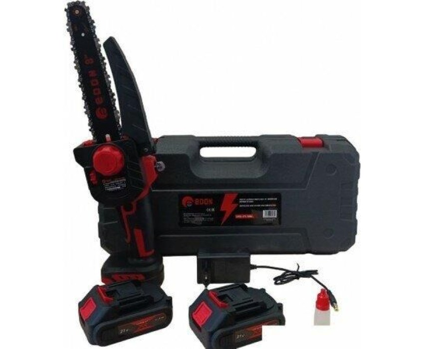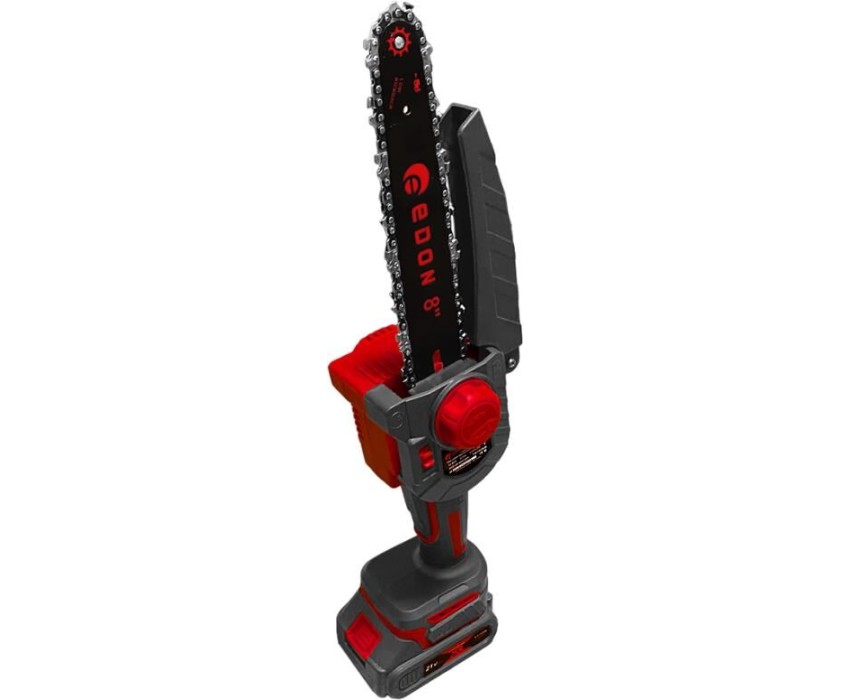 Пила цепная аккумуляторная EDON UNS-21/8BL черный/красный 25170 8", 21В, 2аккум., бесщеточный