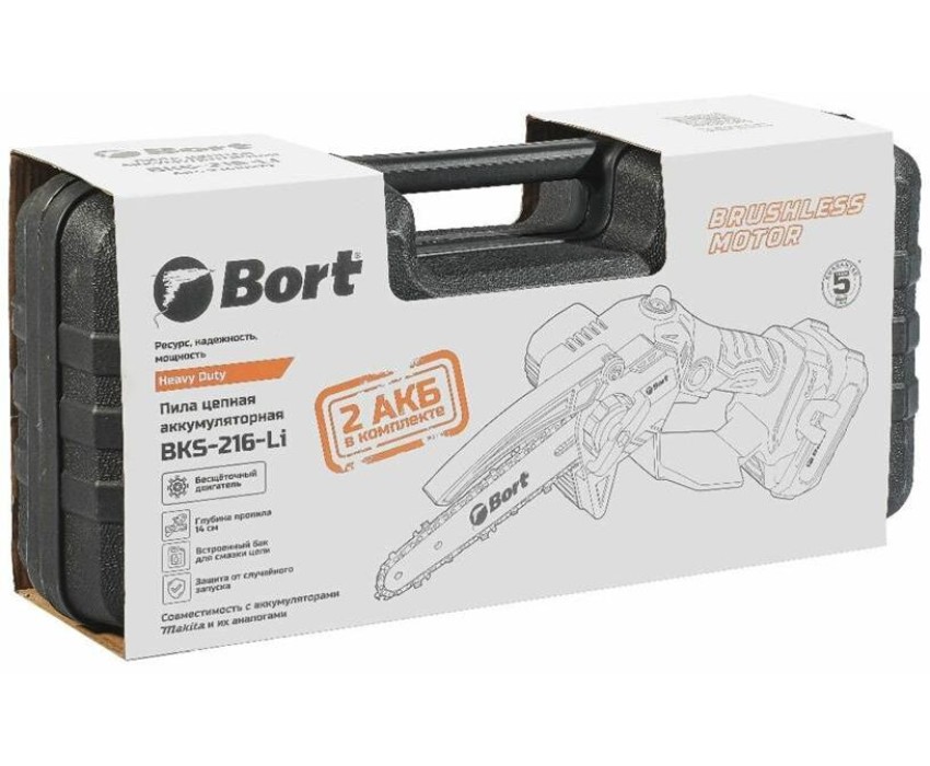 Пила цепная аккумуляторная BORT BKS-216-Li (2x2Ач+ЗУ)
