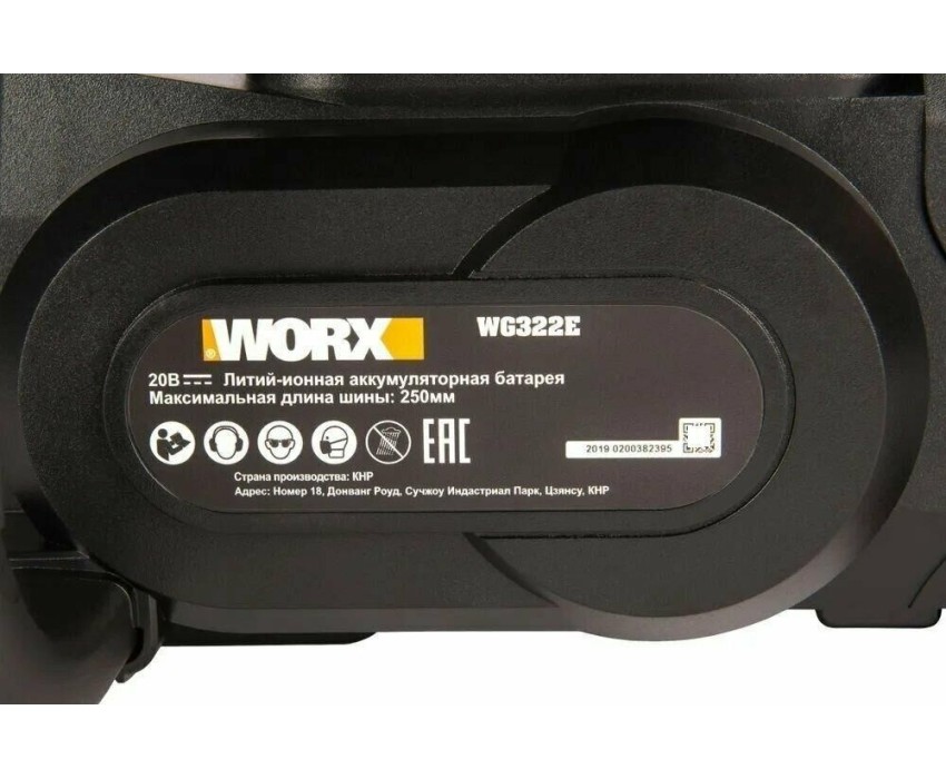 WORX Цепная пила WG322E, аккумуляторная, 20В, 2Ач, с одним аккумулятором
