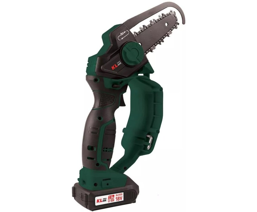 KLPRO Профессиональная аккумуляторная цепная мини-пила KLBZT18-20 (18В, Li-ion-2шт 2,0Ач, ЗУ 2,4А, 3200 об/мин, 110мм)