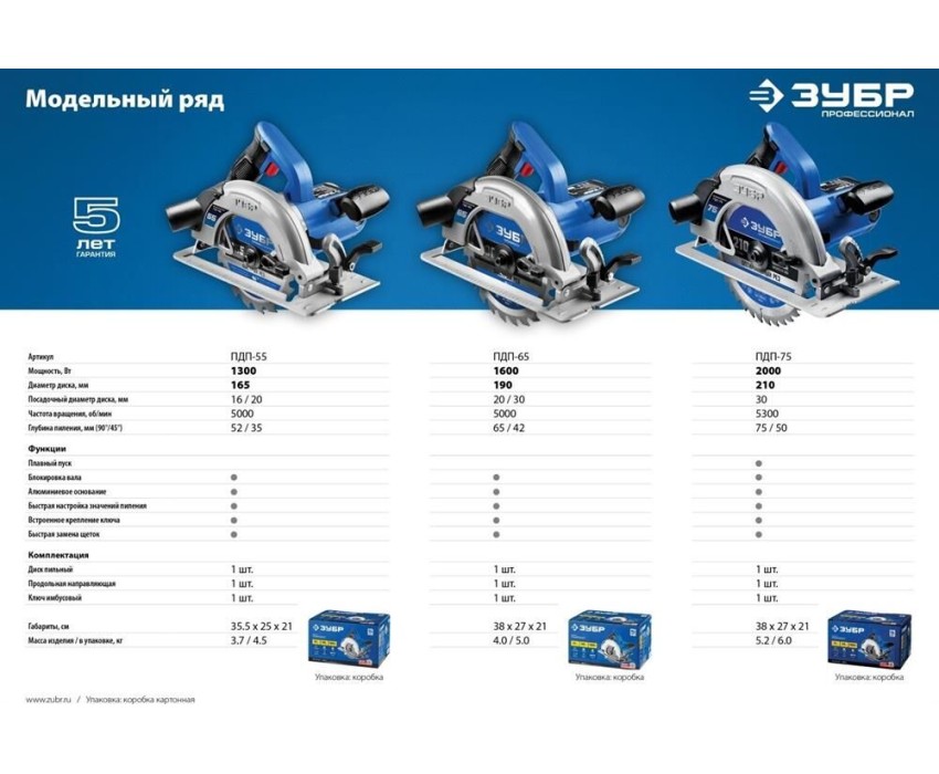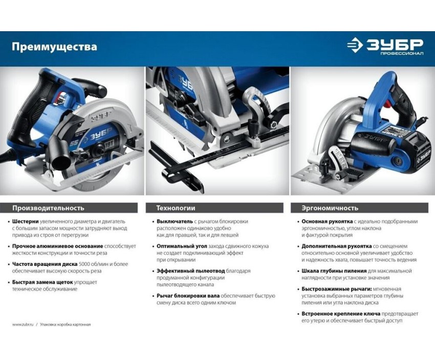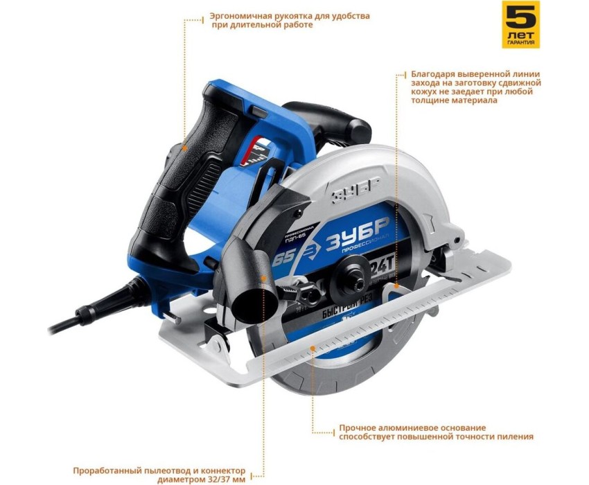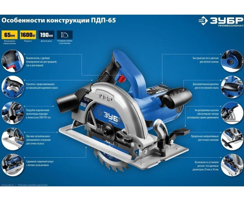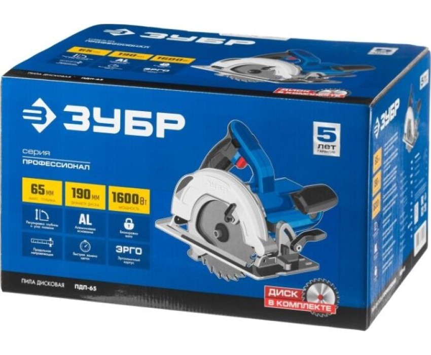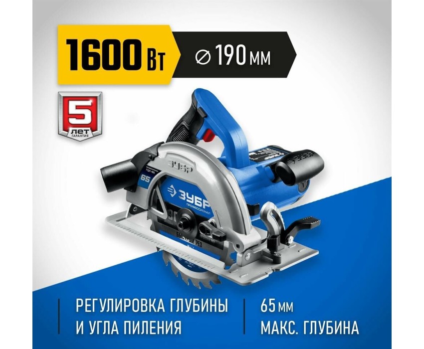 Пила дисковая ЗУБР ПДП-65 Пила дисковая, 90°-65 мм, диск 190 мм, 1600 Вт, Профессионал