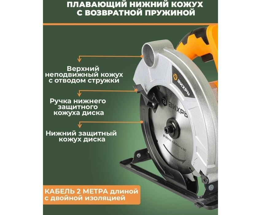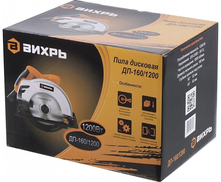 Дисковая пила ВИХРЬ ДП-160/1200 1200Вт, 160мм 72/11/8