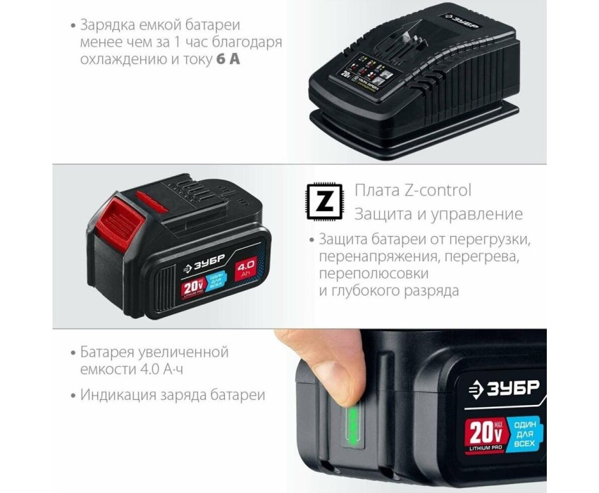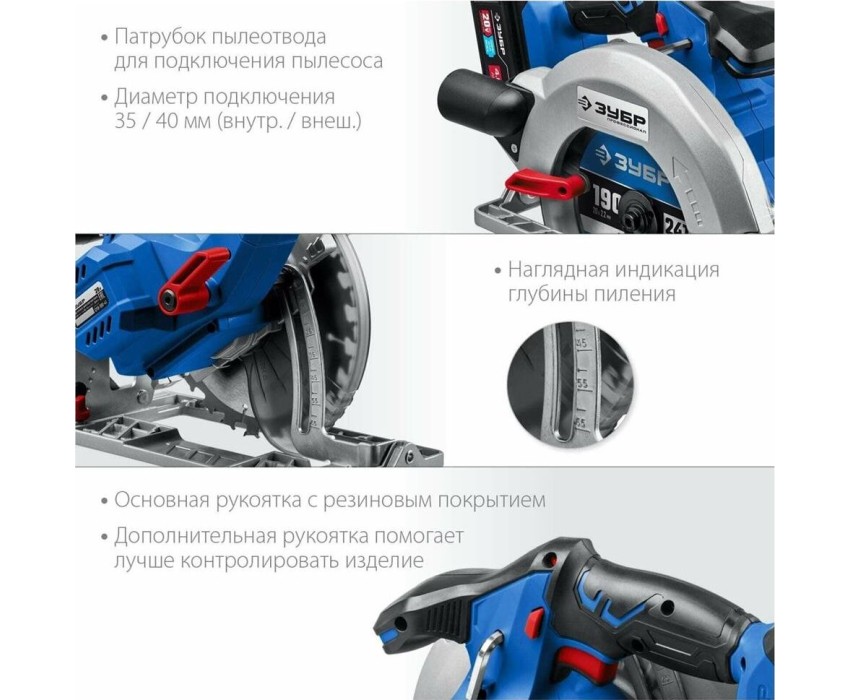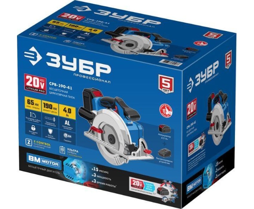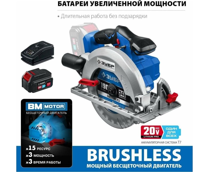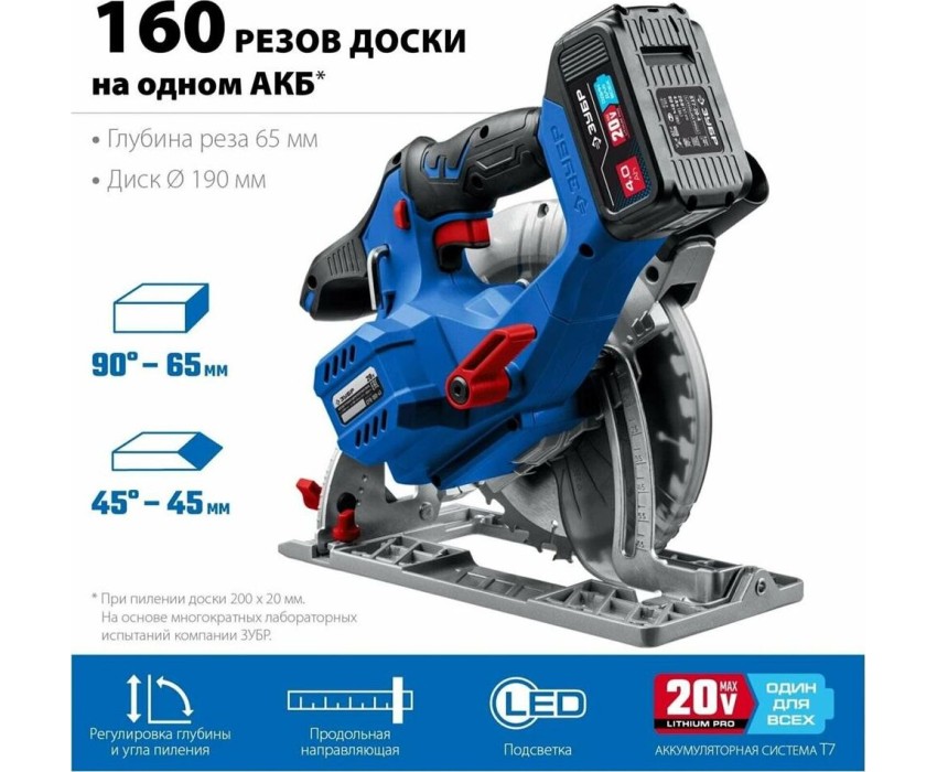 Пила циркулярная ЗУБР CPB-190-41 20В, 1аккум., 190мм, бесщеточный