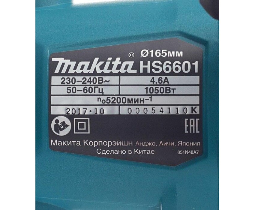 Циркулярная пила MAKITA Циркулярная пила HS6601, 165мм