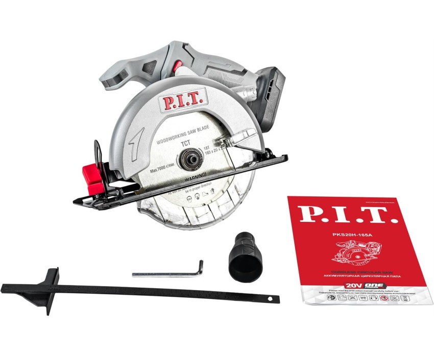 Пила циркулярная аккумуляторная P.I.T. Пила циркулярная аккум. PKS20H-165A SOLO (20В, диск 165мм, пропил 52мм, 4300об/мин, накл.45°)