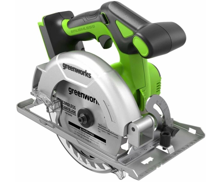 Дисковая пила Greenworks GD24CS165 Дисковая пила 24 V, бесщеточная, 165х20мм, 4800 об/мин, рез 57мм, без АКБ и ЗУ [1501607]