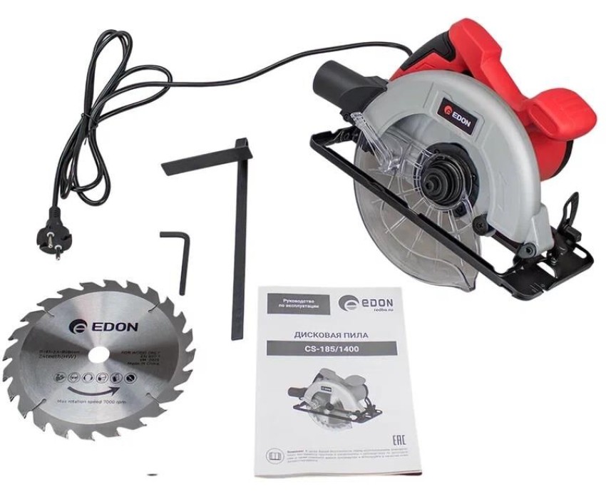 Edon CS-185/1400 Пила дисковая электрическая (1400Вт;185х20х2.4х24Т; 6000об/мин; 62мм; 48мм)