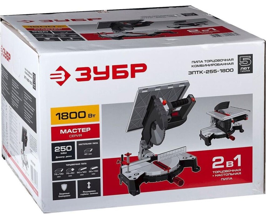 Пила ЗУБР ЗПТК-255-1800 Пила торцовочная комбинированная