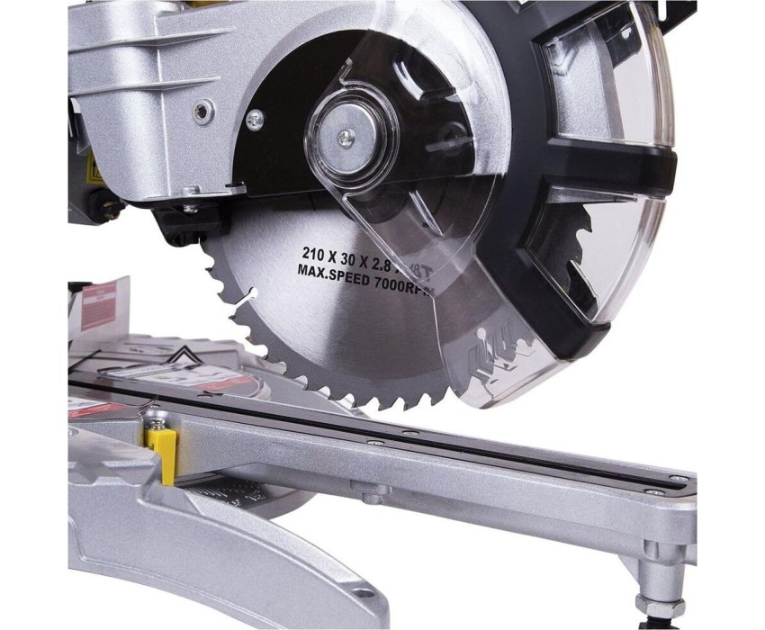 Потребляемая мощность 1500 Вт Пильный диск, диаметр наружный/внутренний 210х30 мм Число оборотов 5000 об/мин Тип двигателя однофазный коллекторный Тип передачи зубчатая Наклон режущего блока влево/вправо 00-450/00-450 Регулировка рабочего стола (поворотного основания) влево/ вправо 00-450/00-450 Номинальное напряжение/Частота 230 В/50 Гц Вес (брутто/нетто) 14,0/12,0 кг