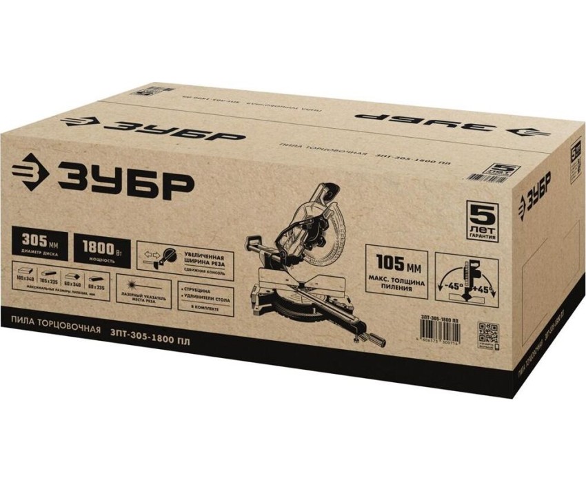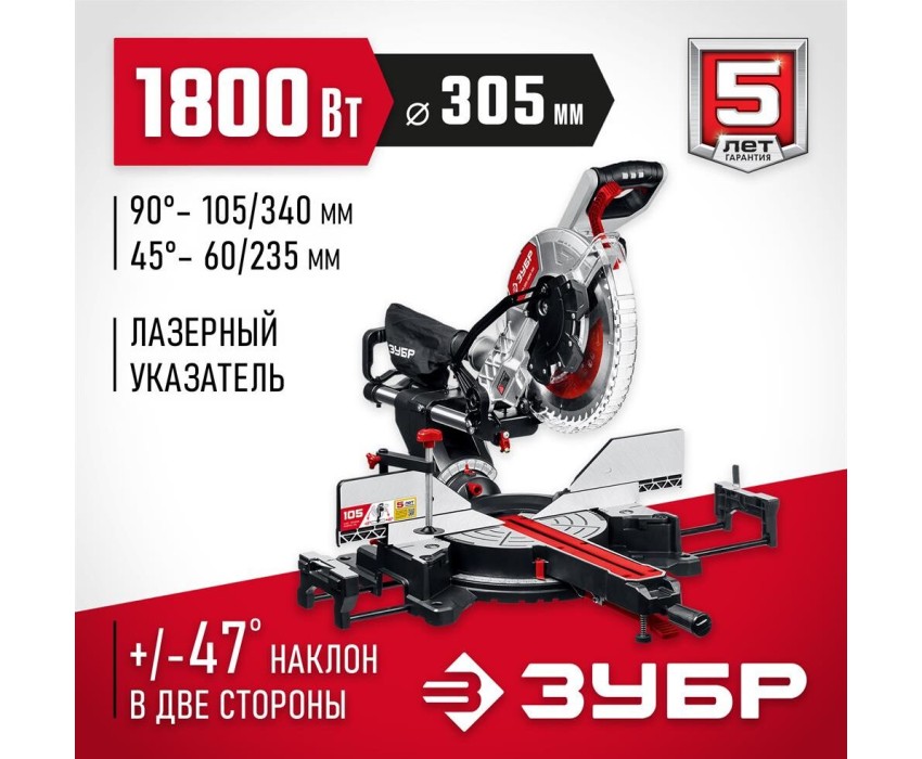 Пила торцовочная ЗУБР ЗПТ-305-1800 ПЛ пила торцовочная с протяжкой