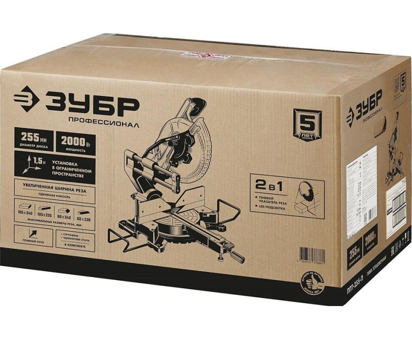 Торцовочная пила ЗУБР ППТ-255-П Профессионал пила торцовочная с протяжкой
